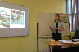 Студентка 1 курса Лаврова Елизавета (специальность «Технологии индустрии красоты») приготовила яблочный уксус как средство для решения проблемы расчёсывания волос. Сулейманова Софья (2 курс, специальность «Преподавание в начальных классах») рассказала о том, как использовать природный материал, песок, для развития тактильного восприятия у детей. Мягкая Вероника и Горчинский Вадим (2 курс, специальность «Организационное обеспечение деятельности правоохранительных органов») продемонстрировали, как знание химии помогает в профессии юриста. Темы их докладов: «Загрязнение почвы моющими средствами в практике юриста» и «Мёд и способы его проверки на натуральность». Пяк Екатерина, Чаусова Полина и Сорокина Дарья (2 курс, специальность «Физическая культура») изобрели коктейль «Энергия чемпиона», который помогает восстановить силы спортсмена после тренировки. Шатохина Злата и Грабарчук Алина использовали свекольный сок, чтобы расписать тканевую куклу, которую они сами сшили. Тема их доклада «Натуральные красители как альтернативное средство для работы дизайнера».
