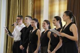 С ответным словом от лица всех студентов выступили представители Студенческого совета. Они поздравили первокурсников и заверили их в своей поддержке, пожелав новичкам не бояться трудностей, активно участвовать в жизни филиала и всегда держаться вместе.
