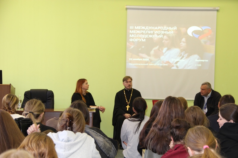 30 октября в преддверии III Международного межрелигиозного молодежного форума Координационный центр по вопросам формирования у молодежи активной гражданской позиции, предупреждения межнациональных и межконфессиональных конфликтов, противодействия идеологии терроризма и профилактики экстремизма в филиале ВВГУ в г. Уссурийске состоялся открытый диалог «Вера за лентой: опыт духовного служения в зоне СВО».